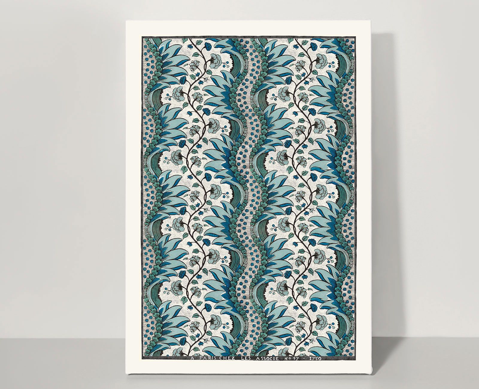 The original design, which is kept in the Museum of Decorative Arts in Paris, is made with simple and limited colors. In this sense, it is very representative of domino papers. Indeed, the printing with engraved woodblocks was done in black, blue or red, while the stenciling was done most often using blue and / or red, occasionally yellow or green…